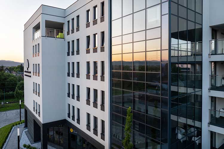 Oba obiekty łączy podejście do studentów jako wymagających użytkowników, oczekujących nie tylko funkcjonalności, ale również przestrzeni wysokiej jakości. Zarówno w Nowym Sączu, jak i w Krakowie zwraca uwagę dbałość o estetykę architektury. Proste bryły uzupełniono dużymi przeszkleniami, które wpisują się w miejski krajobraz i wpuszczają do wnętrz na naturalne światło. Szczególnie ważne są tutaj nowoczesne systemy stolarki aluminiowej WIŚNIOWSKI, które zapewniają komfort cieplny i akustyczny oraz podkreślają nowoczesny charakter budynków. Istotnym elementem są też przestrzenie wspólne: strefy relaksu, nauki i spotkań, sprzyjające integracji i budujące wspólnotę studencką.