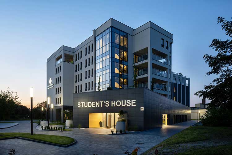 Nowy akademik Student’s House WSB-NLU wyróżnia się prostą, harmonijną bryłą, dużymi przeszkleniami i kontrastowym zestawieniem elewacji. Doskonale wpisuje się w miejski krajobraz, stanowiąc przyjazne i inspirujące miejsce do życia i nauki. 6-piętrowy budynek mieści 74 pokoi jedno, dwu i trzyosobowe, łącznie dla ponad 120 osób. Każdy pokój posiada osobną łazienkę i aneks kuchenny. Na najwyższym piętrze mieści się taras użytkowy pełniący funkcję strefy relaksu. Harmonijna bryła, kontrastowe elewacje i duże przeszklenia czynią z akademika obiekt nowoczesny i inspirujący. W projekcie mocno postawiono na komfort życia studentów. Przestronne wnętrza wspólne, strefy relaksu z designerskimi meblami, duże przeszklenia zapewniające kontakt z zielenią na dziedzińcu - wszystko to tworzy przestrzeń sprzyjająca integracji, pracy i odpoczynkowi. Budynek został zaprojektowany z dbałością o detale i standard, którego oczekuje współczesny użytkownik. Elementy wyposażenia, jak fasady MB-SR50N HI+ czy energooszczędne okna MB-79N i MB-86 od WIŚNIOWSKI, zapewniają zarówno estetykę, jak i parametry techniczne na miarę współczesnych standardów. Zastosowane rozwiązania przeciwpożarowe i dymoszczelne dopełniają kompleksowego systemu bezpieczeństwa.