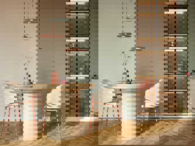 To właśnie oświetlenie decyduje, czy dana paleta działa uspokajająco, czy pobudzająco. Przykładowo lampa w odcieniu terakoty w ciepłym świetle jest miękka i przytulna, a w neutralnym staje się mocnym, eleganckim akcentem, tłumaczy Małgorzata Nowodworska.