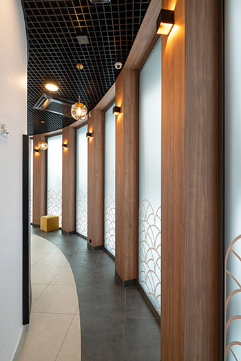 Zastosowano wielowarstwowe szkło o podwyższonej nośności, zaprojektowane indywidualnie pod konkretne warunki eksploatacyjne. Efekt to przestrzeń całkowicie wolna od „technicznych podpórek” i wrażenie chodzenia w powietrzu, całkowicie bezpieczna dla użytkowników.