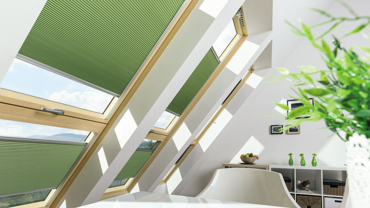 Zielone rolety FAKRO wprowadzają świeżość na poddasze i pozwalają precyzyjnie regulować dopływ światła