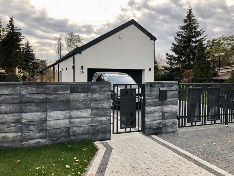 Dopełnieniem całości jest spójne i funkcjonalne ogrodzenie. W przypadku nowoczesnej architektury najlepiej sprawdzają się proste formy idealnie korespondujące z nawierzchnią alejki i geometrycznymi donicami. Aby osiągnąć taki efekt, warto sięgnąć po system ogrodzeniowy Murro. Te solidne betonowe bloczki o wysokości 20 cm, długości 50,4 cm i grubości 20 cm nadają całej strefie wejściowej elegancki i nowoczesny charakter. W zależności od potrzeb, z pustaków Murro można zbudować lity mur gwarantujący domownikom pełną prywatność lub oprzeć projekt na lżejszej konstrukcji ażurowej, która wpuszcza do ogrodu znacznie więcej światła. Ostateczna decyzja zależy od tego, czy bardziej zależy nam na całkowitym odgrodzeniu się od ulicy, czy na wyeksponowaniu roślinności w strefie frontowej. Niezależnie od wybranego wariantu, system ten zawsze idealnie wkomponuje się w nowoczesne aranżacje.