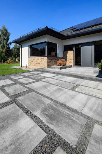Poza utrzymującą się od lat popularnością, duże i średnie płyty mają jeszcze jedną zaletę. Im większych elementów użyjemy do budowy nawierzchni, tym będzie ona cichsza. Duże elementy to mało łączeń i fug, a to oznacza większy komfort akustyczny dla domowników